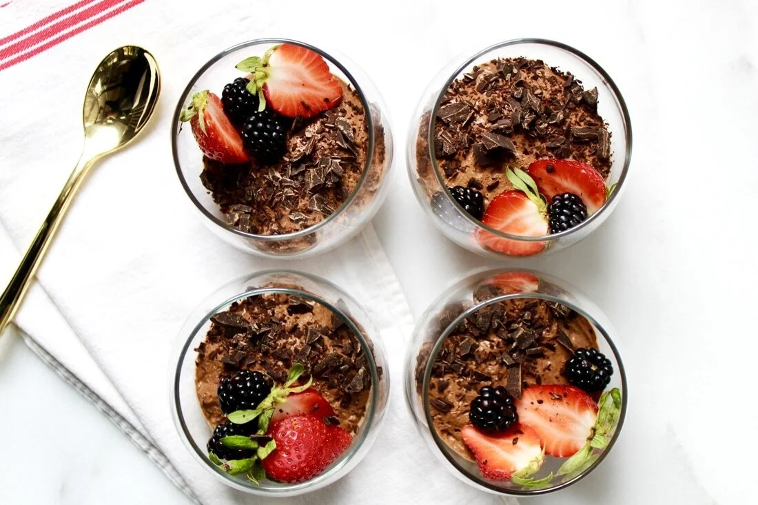 This mousse is more than okay eaten on its own. But, easily step up presentation, texture, and taste with a little chopped chocolate and fresh berries on top. This recipe makes any day or meal that much more special and enjoyable!